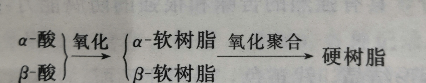 (2)酒花樹脂 酒花樹脂可分為硬樹脂和軟樹脂,而軟樹脂又由a酸、酸及未定性樹脂組成。